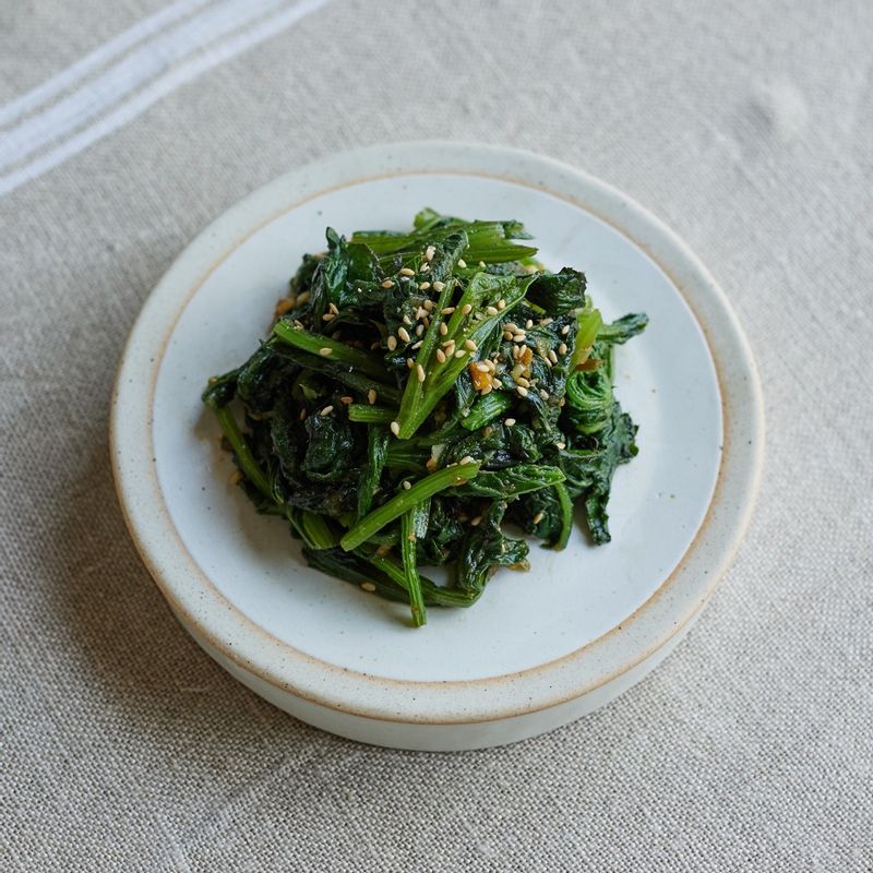 해동된 나물은 흐르는 물에 한번 씻어 물기를 꼭 짜주세요.